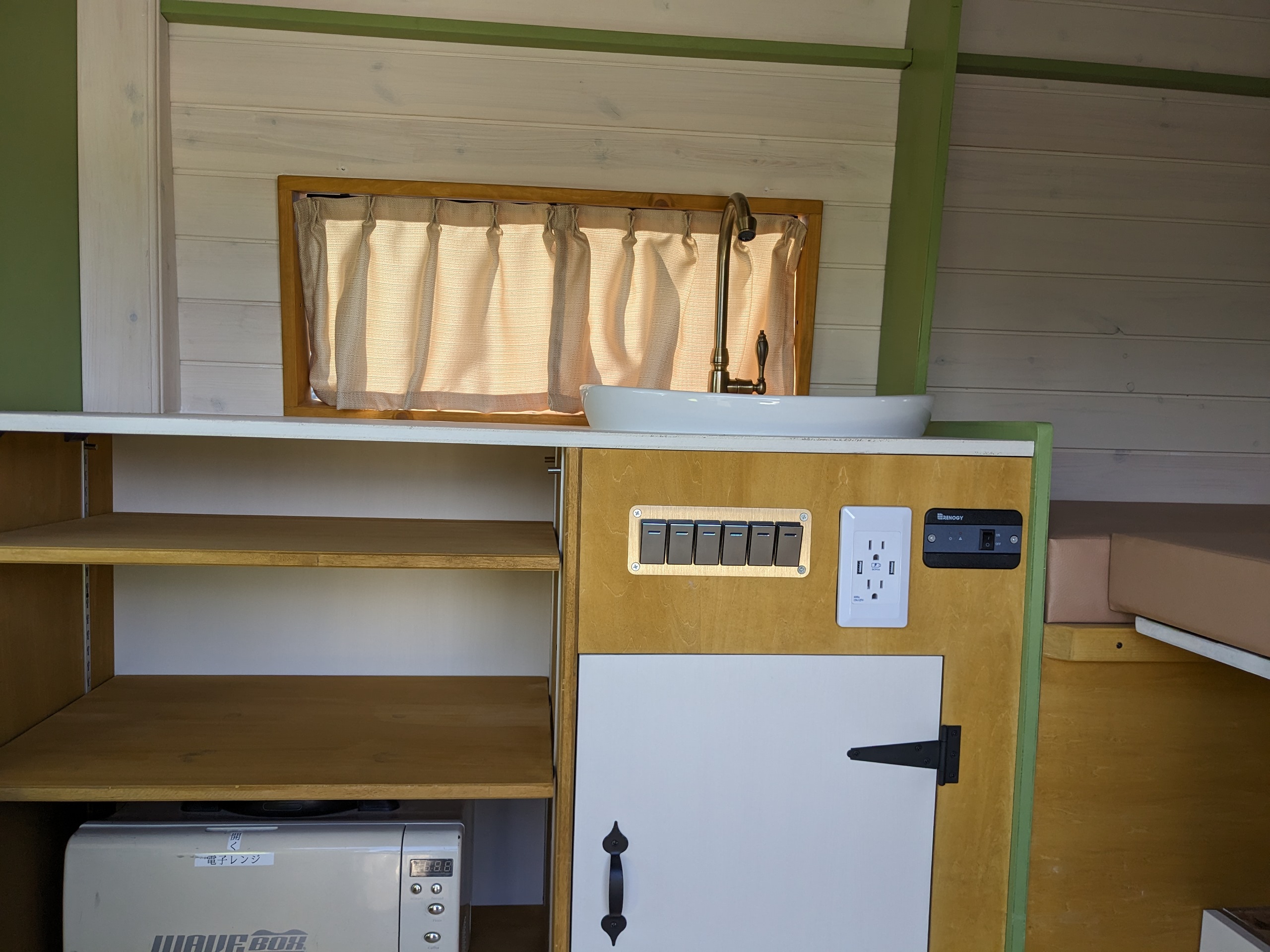 電装装置:走行充電、外部電源、ソーラー200w、2000wインバーター、12エアコン