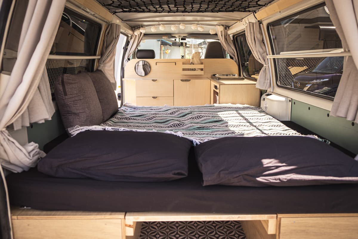 ワンちゃんと楽々旅する機能的な内装ベッド下活用